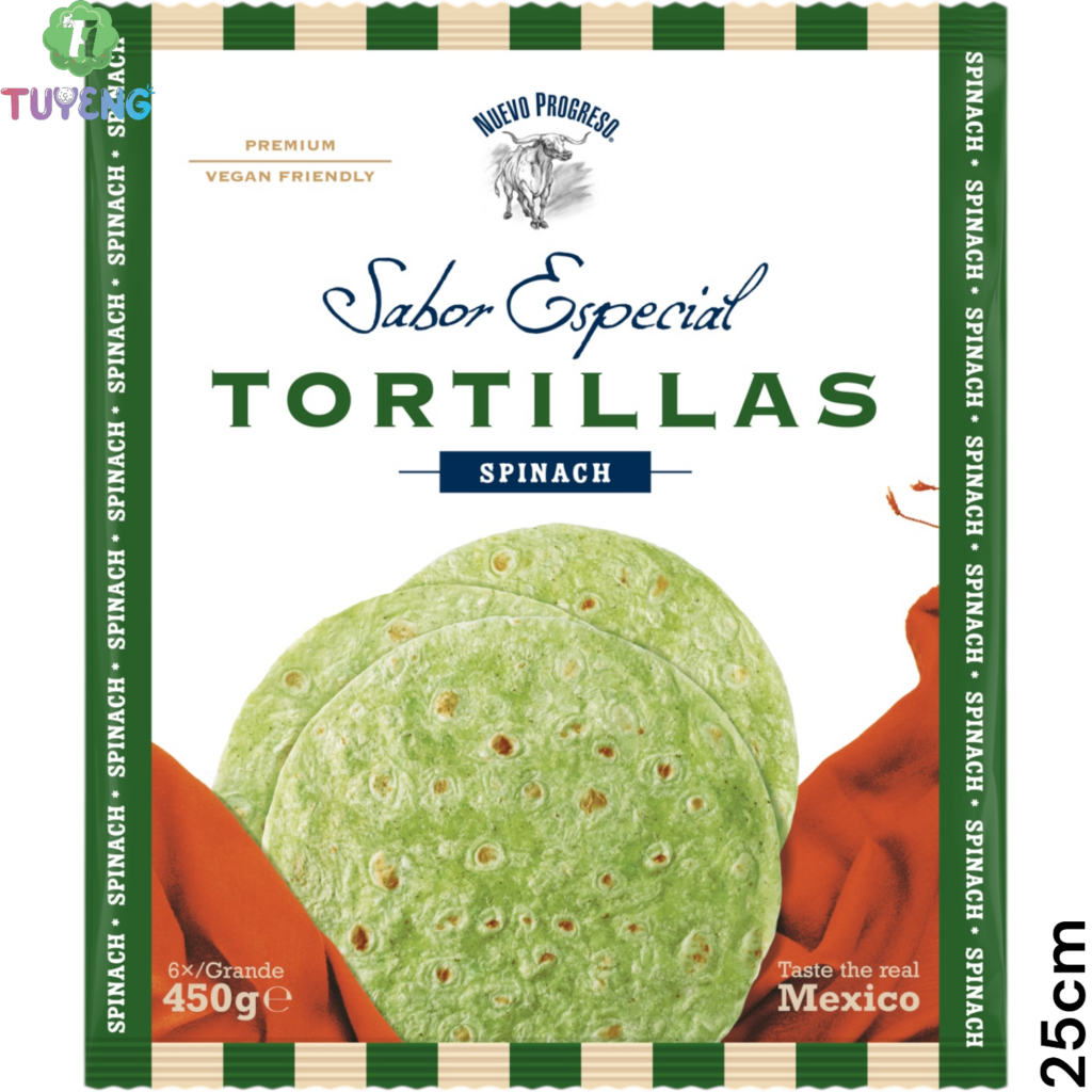 Hãy là người đầu tiên nhận xét “NUEVO PROGRESO Tortillas Spinach x6 25cm 10x450g”