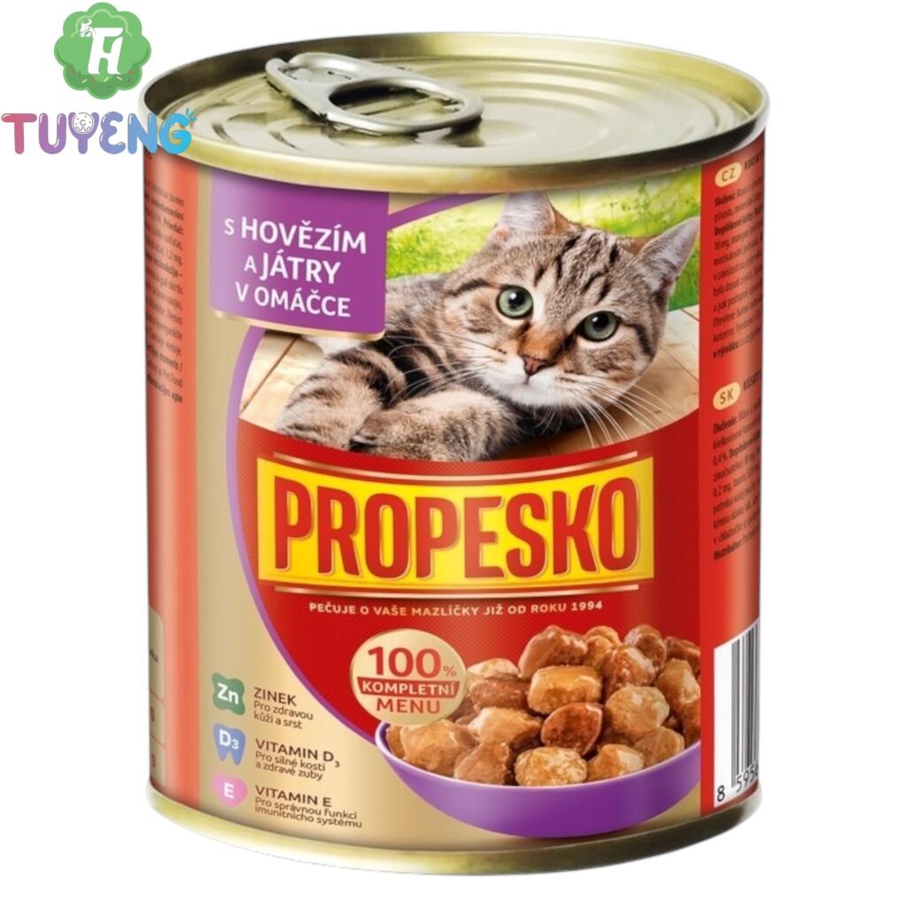 PROPESKO Kousky Kočka Hovězí+Játra V Omacce 830g (6)